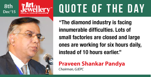 “The diamond industry is facing innumerable difficulties. Lots of small factories are closed and large ones are working for six hours daily, instead of 10 hours earlier.”